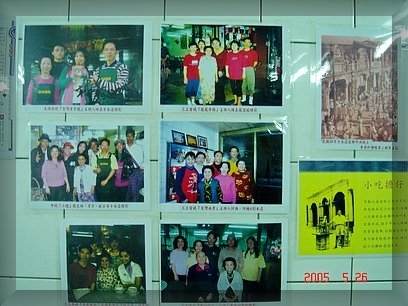 店內牆上掛著電視採訪的照片,有陳美鳳,阿西興阿嬌,小嫻,羅志詳,歐漢聲….等節目主持人的合照,右邊2張照片是以前大溪老街的舊貌跟的以前人用擔子挑著小吃到處叫賣的照片。