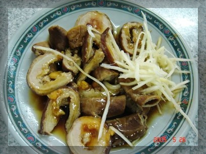 滷大腸也是anthony的最愛,但沒有每次來都有,所以昨天anthony一看到有滷大腸,說什麼也要叫一份來吃,滷的軟爛的大腸,口感很不錯,沾著蒜醬,應該是滿多人都喜歡的一個小菜,但amy不太吃內臟,因此只嚐了一小個,所以這盤仍是進了anthony的肚子。