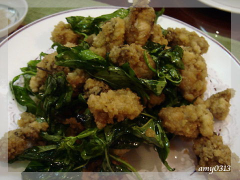 蚵仔酥。這應該也是台灣料理的代表之一吧?amy自己挺喜歡這道菜的,溪友緣的蚵仔酥做的很好,麵皮薄,且炸的火候控制很好,皮脆內軟,沾著糊椒鹽,香酥好滋味。