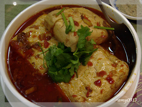 招牌臭豆腐。原本amy擔心這道太道地的台灣料理Kiyo跟加藤先生不敢吃,沒想到他們很愛呢,真是讓amy有點小訝異,因為連amy都不太能接受的料理,沒想到卻虜獲日本朋友的心。溪友緣的臭豆腐看起來辣吃起來卻是香來不辣,連不愛這道菜的amy都吃了大半個呢,果真是招牌哦~。