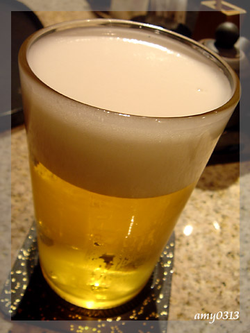 anthony點了一小瓶啤酒,聽他說啤酒會把海鮮的味道再次喚醒,這個amy就很難體會了,不過anthony覺得日本人在控制啤酒的溫度方面做的很棒,送上來時都能維持在啤酒最順口的溫度,而且倒酒的比例也都很好,amy覺得日本人在這些地方真的很厲害。