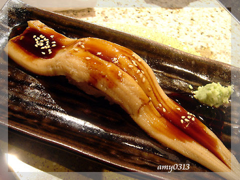 這個星鰻一上來時amy的眼睛真的睜大了,因為第一次看到一整條星鰻做成一個握壽司,實在太大器了。入口即化的星鰻加上醬汁的味道,味道真的好到沒話說,會讓人上癮的一個握壽司。
