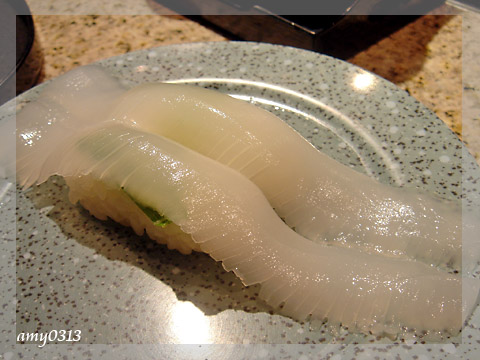 這個章魚也是讓amy睜大眼的另一個,好大一條章魚,而且晶瑩剔透閃著新鮮的光澤,一入口忍不住說:好甜好軟好好吃哦!只能給它二隻大姆指來代表心中的讚美。