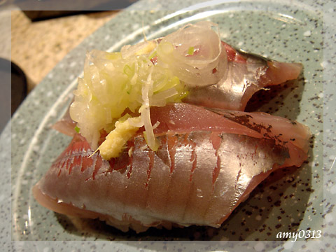 這個魚是什麼名字amy真的忘了(真的很謝謝網友Arthur熱心的查證,日本好友Kiyo也來信告知是竹筴魚沒錯),它的口感很棒,很軟,而且油脂也不少,很好吃的一種魚。