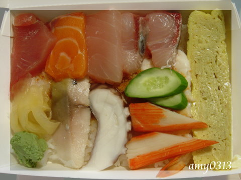 散壽司/$240。當看到鰻魚飯長那樣時,amy真慶幸自己是吃散壽司,一份$240的散壽司,感覺上好多了,雖然長的不好看,但是外帶也沒什麼好挑的,魚新鮮就夠了,感覺上跟大溪醬太$260的散壽司差不多呢。
