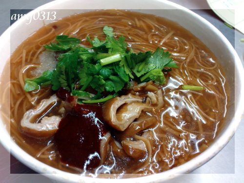紅麵線(大)/$60。這家的大腸滷的非常好,很軟很入味,而且是單純一鍋滷的,等客人點麵線時再拿起來現剪放進去,並不是一大鍋麵線裡什麼都有的那種,個人覺得這種方式較好。加了蒜泥、醋、醬油跟辣椒的大腸麵線真的是一種享受的下午茶時光。