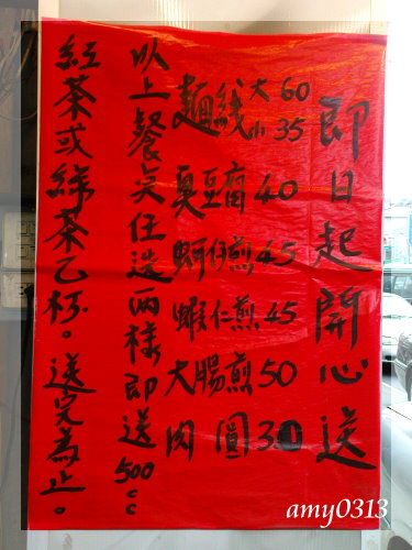 這家店一邊是麵線攤一邊賣泡沫紅茶,這天來買的時候看到這個告示,真的是開心送呢~,因為吃這種小吃真的要來點飲料比較好,這樣一來就覺得店家實在太貼心了。