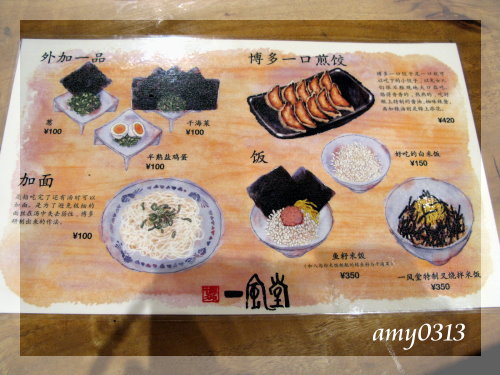 menu是有二面,背面是加點的部分,有中文版的menu對台灣的遊客來說,真的方便很多。