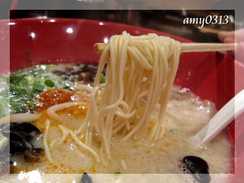 麵條用的是細的條麵,更能吸附湯汁的味道。這碗”赤丸疊味拉麵”真的很棒,湯頭濃郁而不覺得油膩,味道鹹中帶著味噌跟香油的香氣,加上細麵的Q度,真的是一碗很棒的拉麵。