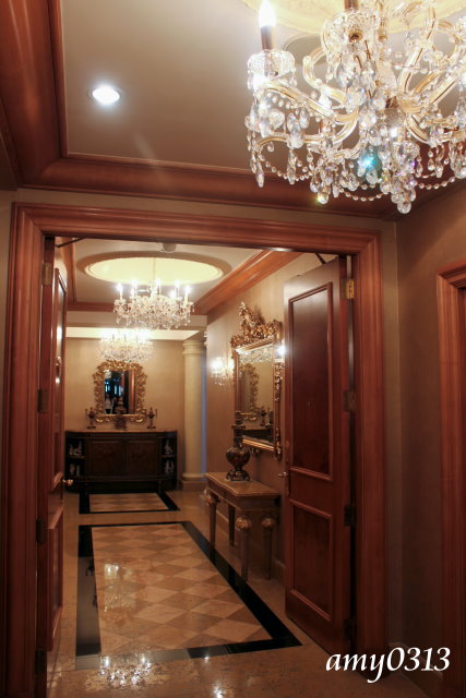 走進玄關就看到一盞盞華麗又古典的水晶吊燈。