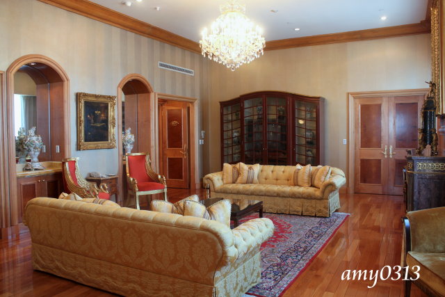 『漢來飯店』的"總統套房"約140坪,強調手工雕刻與優雅復古的風格。首先看到的是超大的宴會廳,近50坪,挑高的空間感覺氣派非凡。