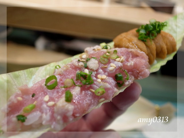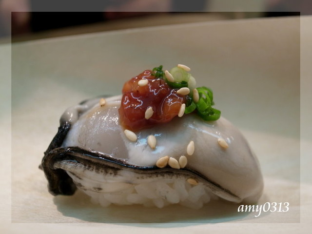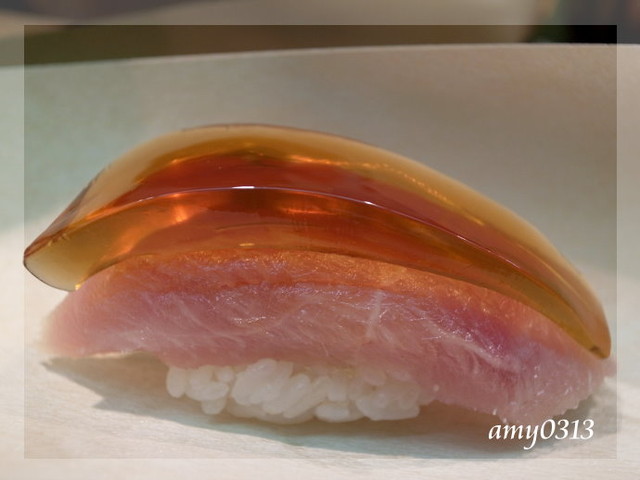 這是什麼魚amy真的想不起來了,只是依稀記得上頭搭配的鮑魚汁凍讓整個壽司的口感及味道都提升且豐富了不少。